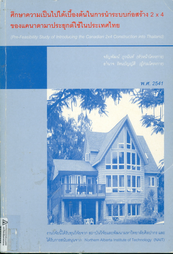 รายการใกล้เคียง ชื่อเรื่อง [ศึกษาความเป็นไปได้เบื้องต้นในการนำระบบก่อสร้าง 2*4 ของแคนาดามาประยุกต์ใช้ในประเทศไทย]